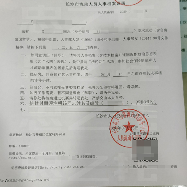 长沙市人力资源公共服务中心调档函办理