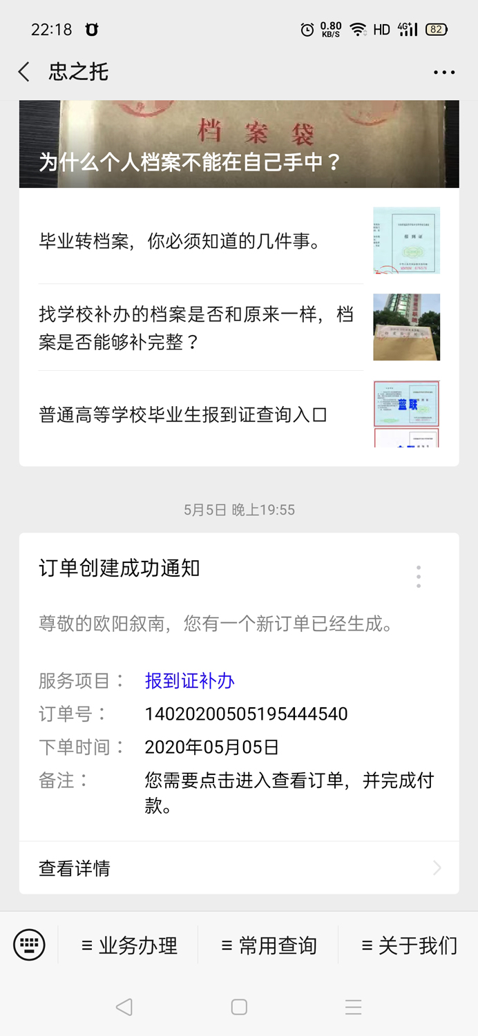 忠之托的工作人员会告诉您需要的材料,以及所需费用。确认好相关事宜后,系统会生成订单。订单信息将会通过微信公众号推送给您。