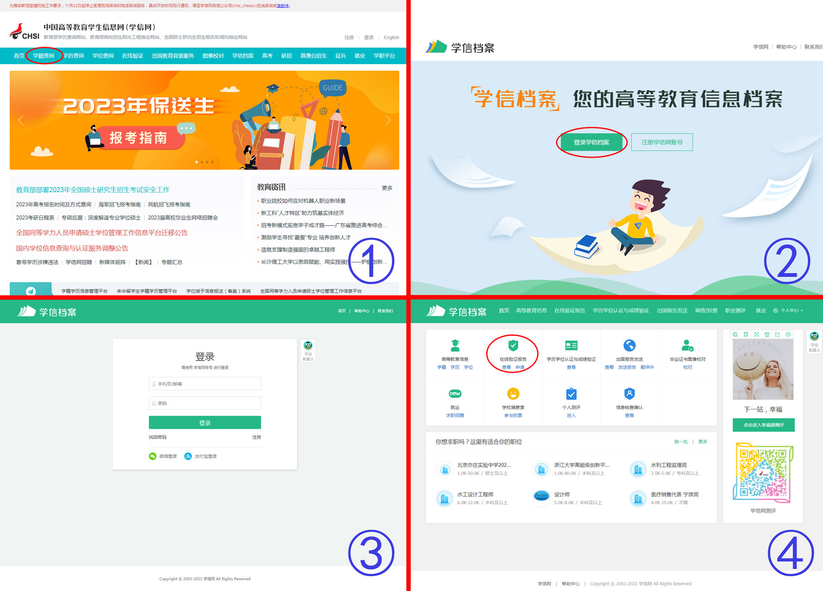 第二步:登录学信网(首次登陆需注册,老学历不能查询的,需要主动做学历认证才能查询到学历认证报告)