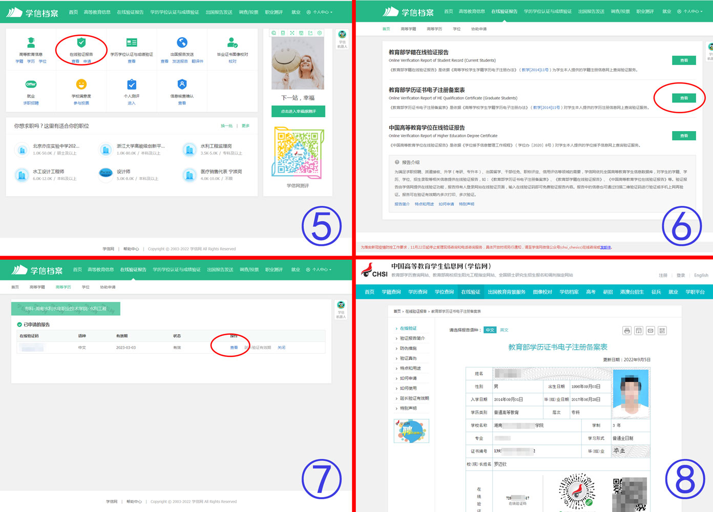 第三步:选择“在线验证报告”,再选择“教育部学历证书电子注册备案表”,有现成报告的直接查看,无现成的可以在线申请,最后下载即可。